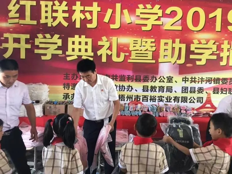 9月4日,監(jiān)利縣縣委辦公室攜手縣教育局,團縣委,縣婦聯(lián),縣服裝行業(yè)協(xié)會、百裕集團等部門領導、組織及愛心企業(yè)到汴河鎮(zhèn)紅聯(lián)村小學開展扶貧助學捐贈活動,為孩子們送去學習生活物資,縣政協(xié)副主席樊明波參加活動。