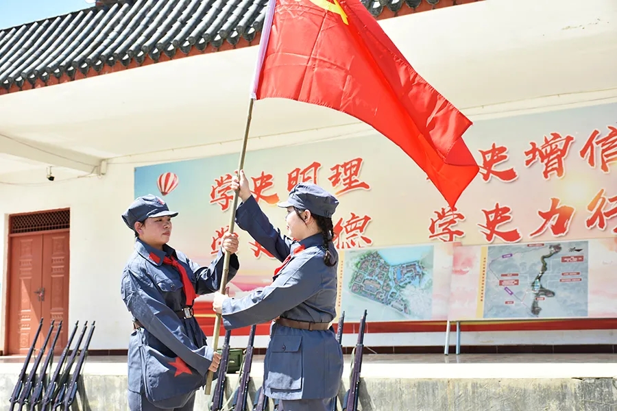 當(dāng)天,參加活動(dòng)黨員干部懷揣著敬慕與感恩之心,穿上紅軍服戴上紅軍帽,模擬紅八軍建制,編隊(duì)整訓(xùn),沿著革命先輩的足跡,徒步重走一次紅軍路,舉行簡單的授旗儀式后,學(xué)員們高舉旗幟,從水隴徒步至甫茶,追憶紅軍革命精神,傳承紅色精神!