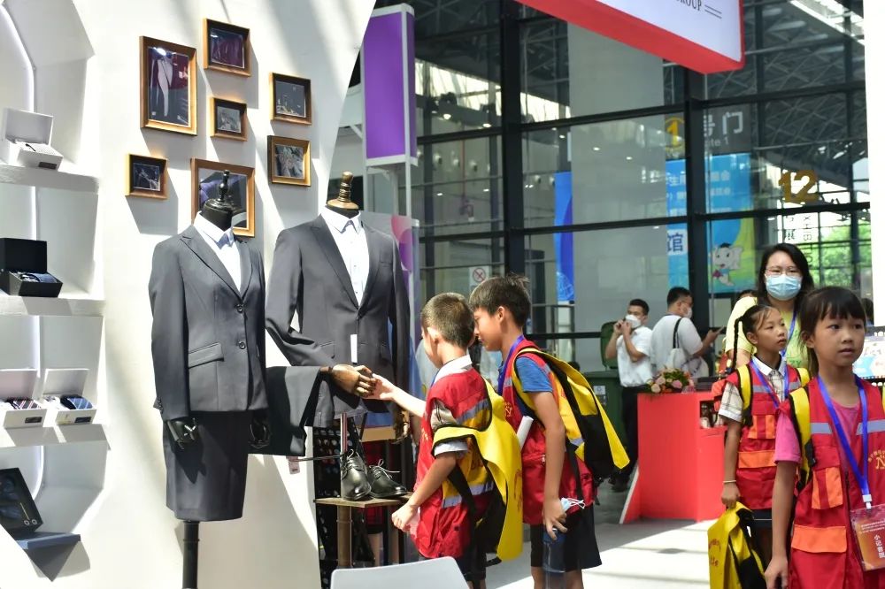服飾展區(qū)吸引了小記者團(tuán)的關(guān)注與了解,對(duì)服裝的制作、面料、配飾、洗滌護(hù)理等知識(shí)充滿好奇心并爭(zhēng)相提問,在百裕集團(tuán)員工現(xiàn)場(chǎng)耐心解說下,小記者們收獲滿滿!