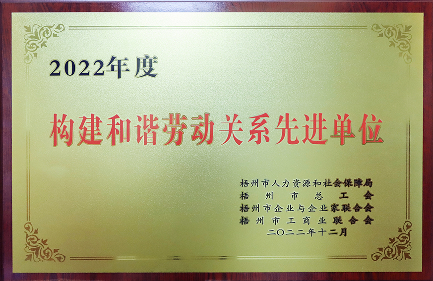 根據(jù)梧州市人力資源和社會保障局、梧州市總工會、梧州市企業(yè)與企業(yè)家聯(lián)合會、梧州市工商業(yè)聯(lián)合會公布了《2022年度梧州市構(gòu)建和諧勞動關(guān)系先進(jìn)單位名單》的通知,表彰了一批有力維護(hù)和諧勞動關(guān)系、切實保障職工權(quán)益的優(yōu)秀企業(yè),百裕世紀(jì)(集團(tuán))有限公司光榮在榜。