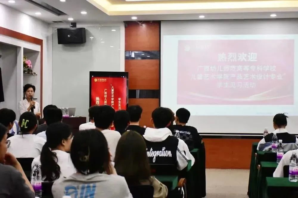 3月21日,廣西幼兒師范高等??茖W(xué)?!皟和囆g(shù)學(xué)院產(chǎn)品藝術(shù)設(shè)計專業(yè)” 2022級59名學(xué)生,在老師們的帶領(lǐng)下,來到百裕集團(tuán)南寧營銷中心開展見習(xí)活動。