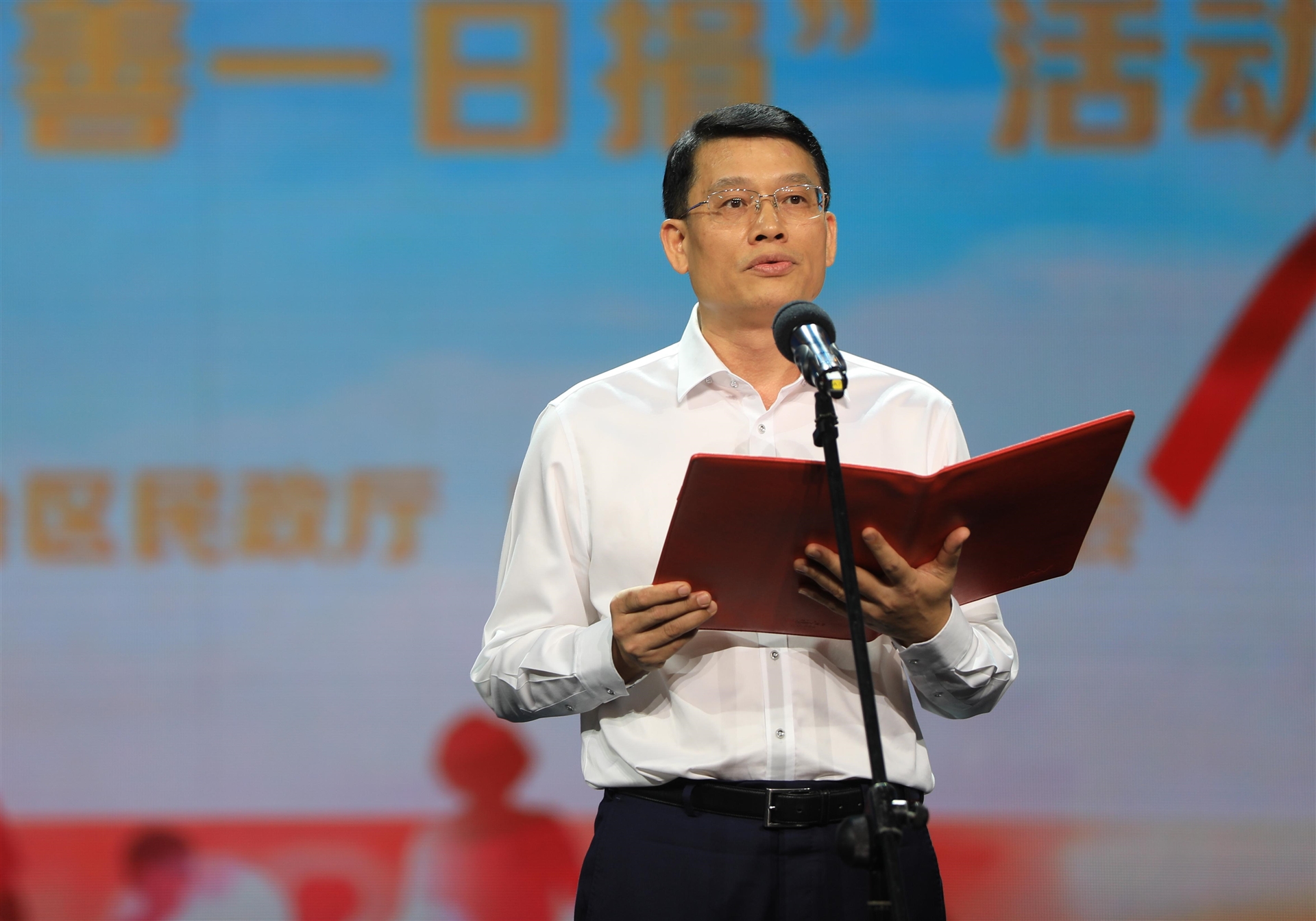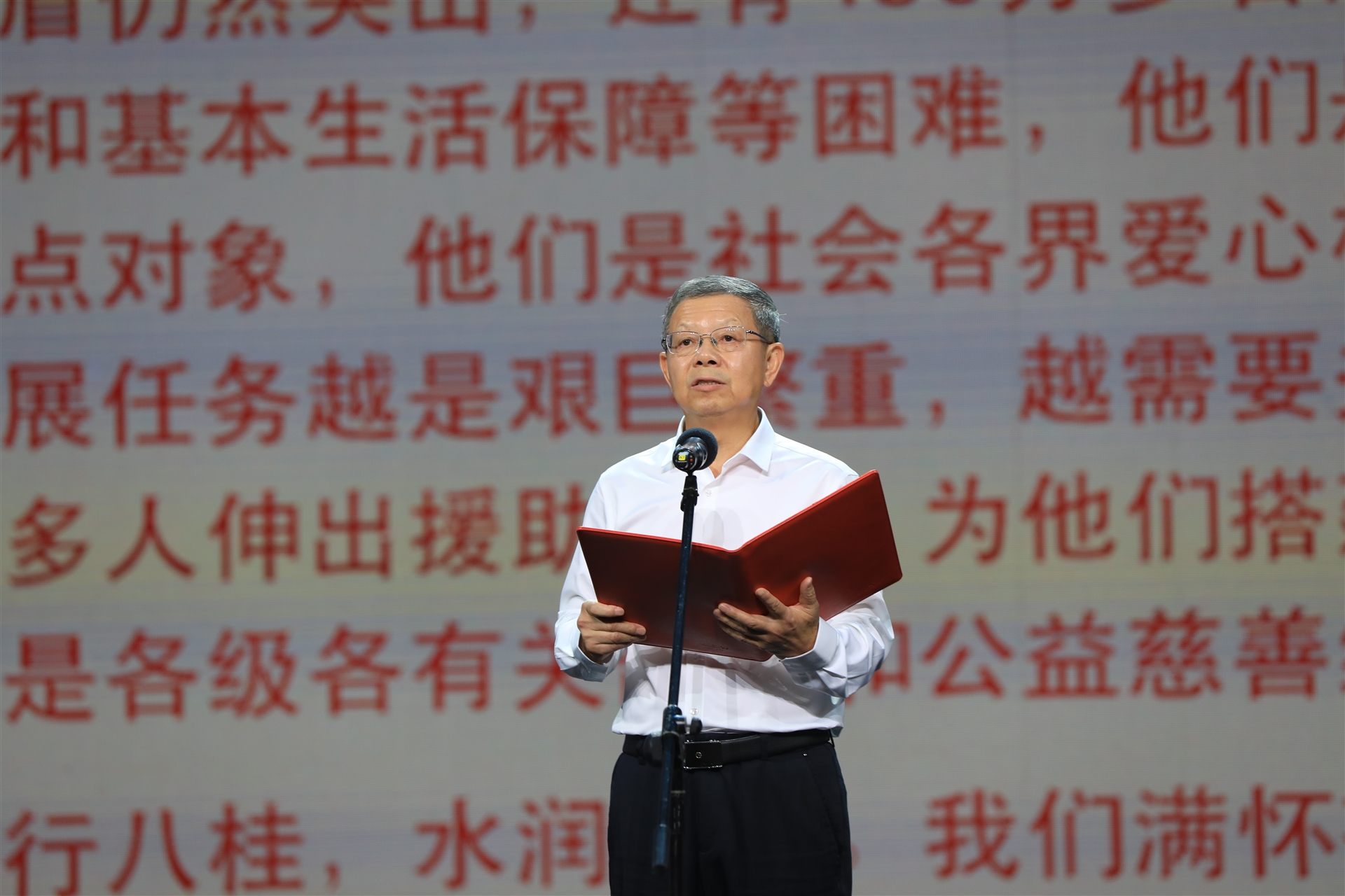 廣西慈善總會會長、自治區(qū)政協(xié)第十一、十二屆原副主席劉正東宣讀慈善倡議書