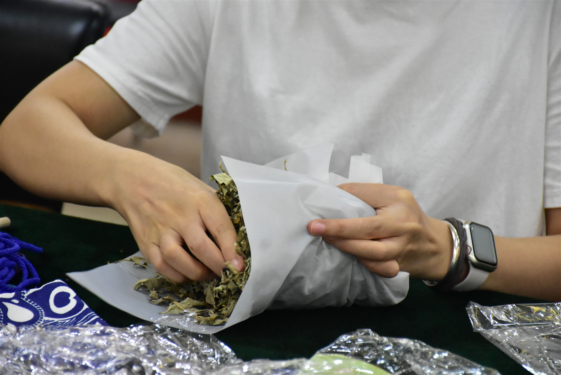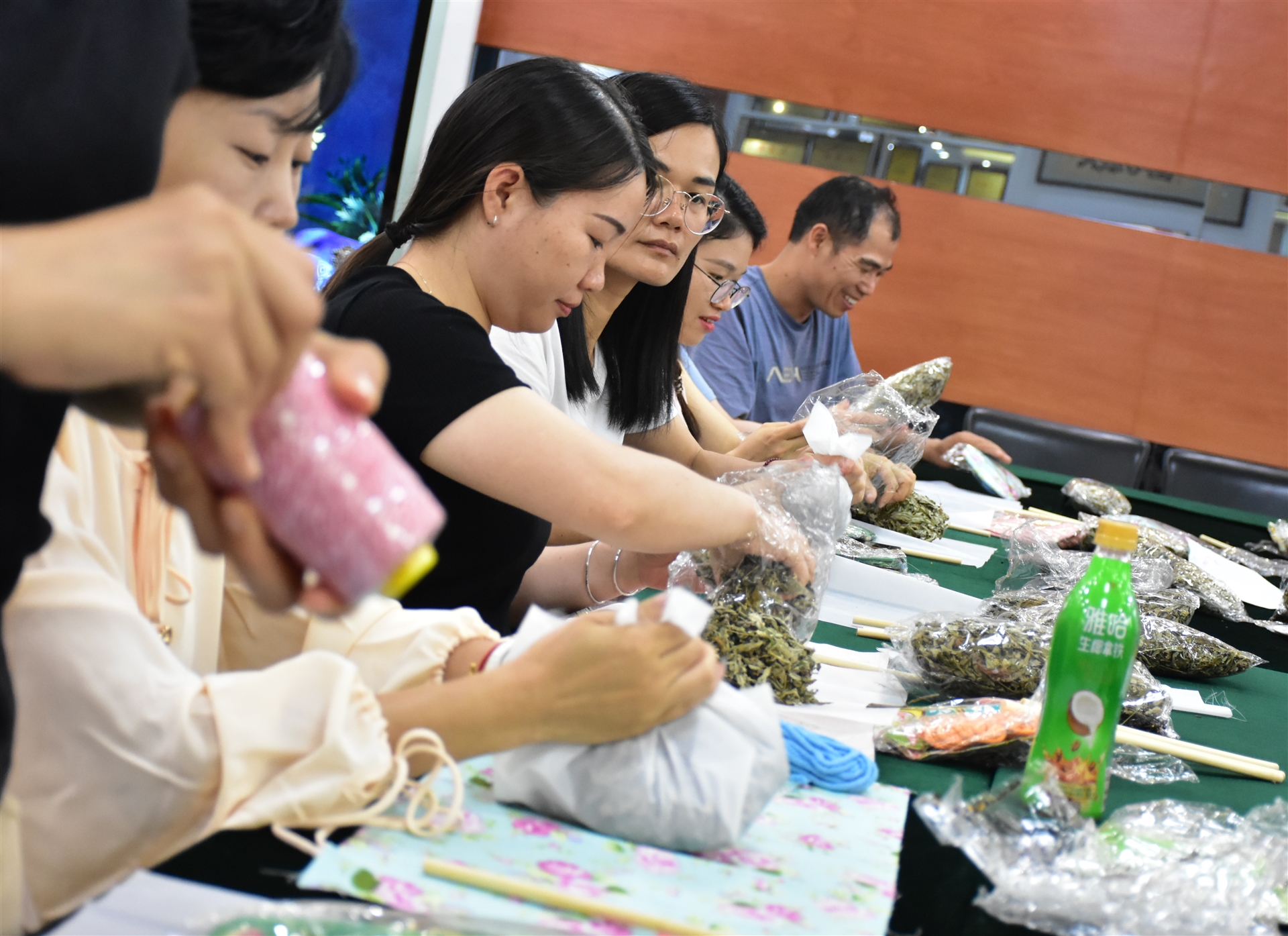 每位員工都認(rèn)真挑選艾草,細(xì)心纏繞五彩線,精心固定小錘子。制作過(guò)程中,大家互相交流心得,分享技巧,現(xiàn)場(chǎng)洋溢著歡聲笑語(yǔ)。