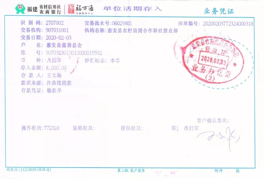 (向惠安縣慈善總會捐贈8000元)