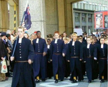 歐洲的校服仍然維持著它一直以為低調(diào)和貴族的傳統(tǒng),被譽為最正統(tǒng)的校服,沿用了多年的皇室制服款式。英國校服款式經(jīng)典、簡潔大方,中學(xué)生必須穿著正統(tǒng)西式校服,男生為正統(tǒng)西裝、正規(guī)皮鞋、需要佩戴領(lǐng)帶,女生也是統(tǒng)一西式正統(tǒng)服裝、正規(guī)女式皮鞋、必須佩戴領(lǐng)花,不論是?;?、帽徽,無一不顯示著英國人特有的風(fēng)度和氣質(zhì)。也不知是歐洲的學(xué)生更嚴(yán)肅還是校方更強硬,他們的態(tài)度似乎是“學(xué)生就要穿得像個學(xué)生的樣子”。他們對校服的重視程度也不輸給日本,認(rèn)為校服是培養(yǎng)學(xué)生紀(jì)律意識最直接的手段。