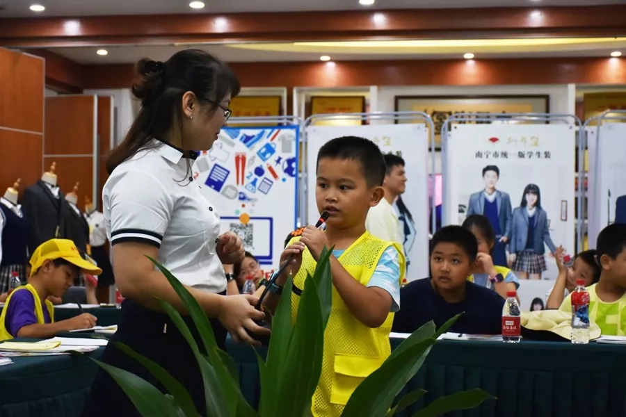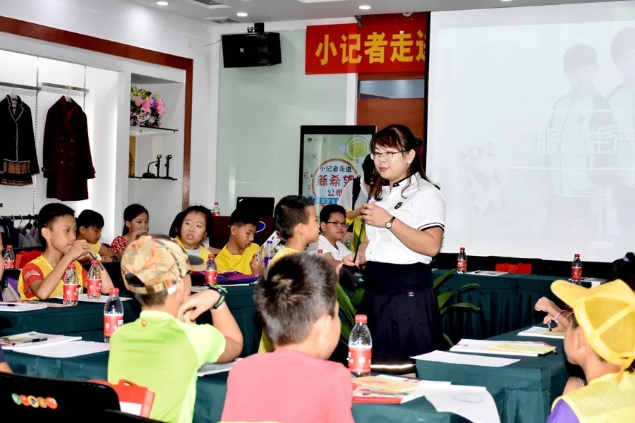 百裕集團營銷中心市場總監(jiān)曾凱蘭在活動中與小記者們交流互動,通過提問等形式,使同學(xué)們更深刻認識學(xué)生裝。小記者們踴躍參與,并將學(xué)到的知識點認真做好筆記。