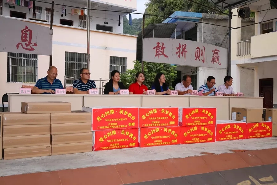 近日,由集團市場總監(jiān)曾凱蘭、河池分公司總經(jīng)理林志煌帶隊的百裕公益小組,分別深入馬山、巴馬地區(qū),為馬山里當初級中學、巴馬第五幼兒園的學生們捐贈衣物,表達企業(yè)的關(guān)懷。