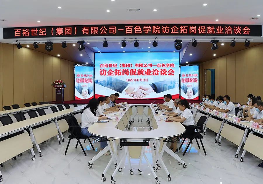 為貫徹落實教育部“高校書記校長訪企拓崗促就業(yè)”專項行動,拓展畢業(yè)生就業(yè)渠道,全面深化校企合作,6月9日下午,百色學院學校黨委副書記徐魁峰率隊蒞臨百裕集團考察調研,并就“訪企拓崗促就業(yè)”進行洽談。