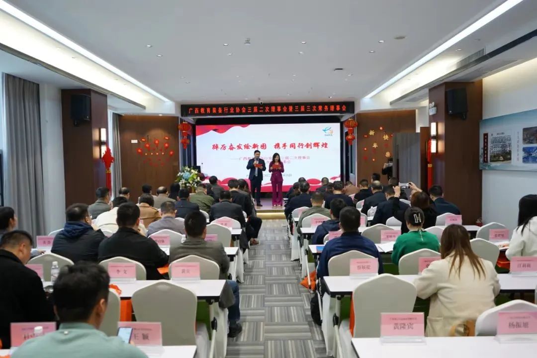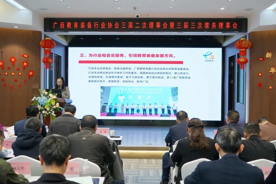 2023年2月16日,廣西教育裝備行業(yè)協(xié)會三屆二次理事會暨三屆三次常務理事會圓滿召開。協(xié)會會長、常務副會長、常務理事、理事以及部分特邀企業(yè)代表共100多人參加會議。區(qū)教育廳、南寧市、崇左市、玉林市、貴港市、欽州市等市縣教育裝備站領導蒞臨會議指導。