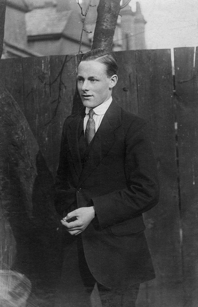 20世紀,攝影圖,穿西服的男人。這個時期的領(lǐng)帶已經(jīng)出現(xiàn)了各種花色和不同的紋路。